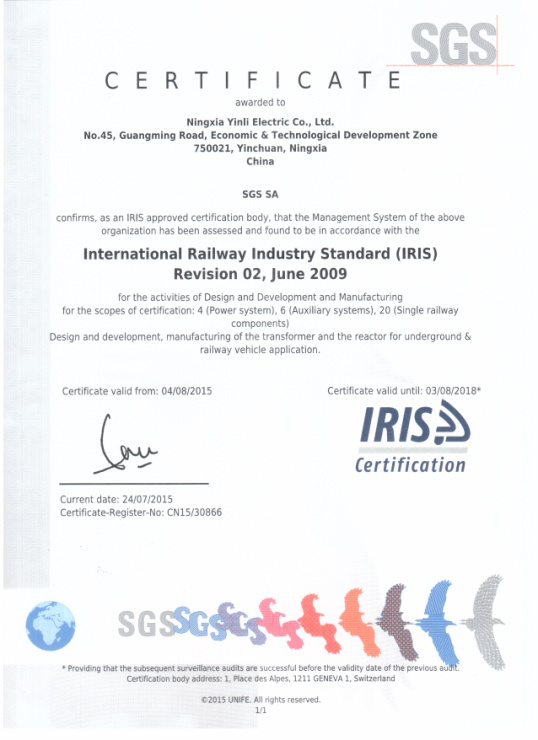 IRIS國(guó)際鐵路質(zhì)量體系認(rèn)證證書